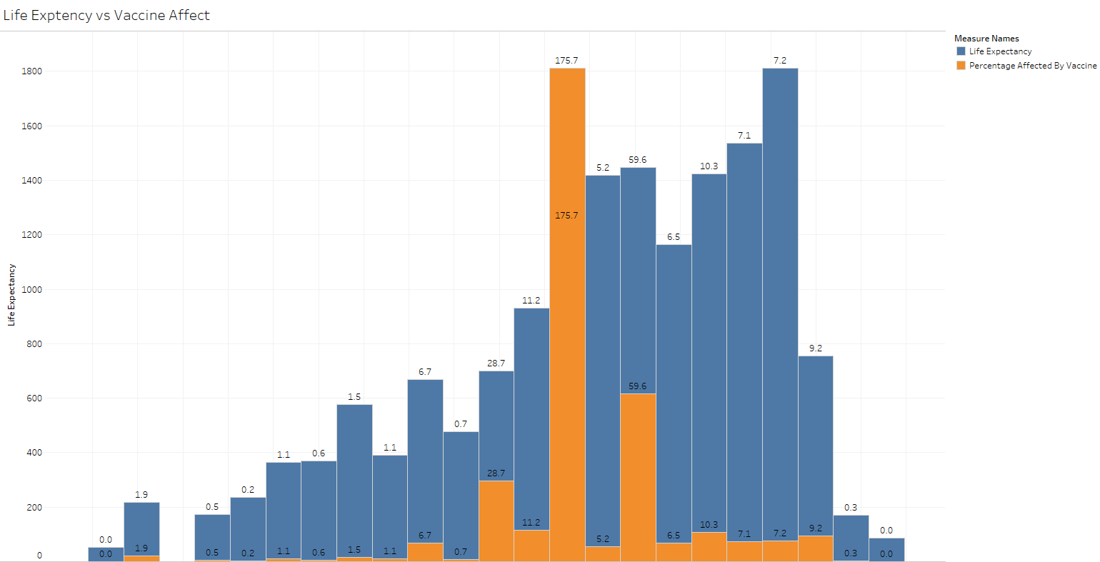 Initially, life expectancy in Third World countries trailed below the global average. However, a discernible trend emerges from the provided bar chart, indicating a noteworthy uptick in life expectancy during the pandemic era coinciding with the escalation of vaccination efforts. The correlation between increased vaccination coverage, represented by the orange bars, and the corresponding rise in life expectancy, depicted by the blue bars, is apparent.